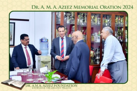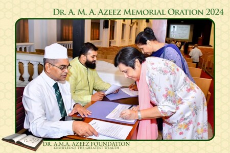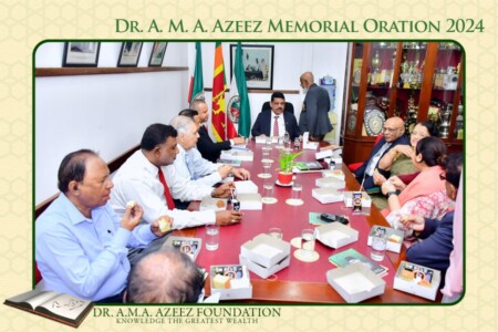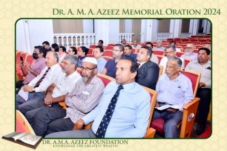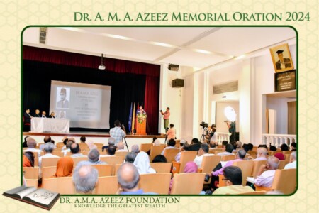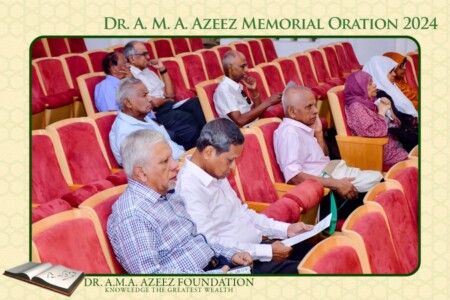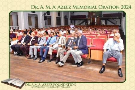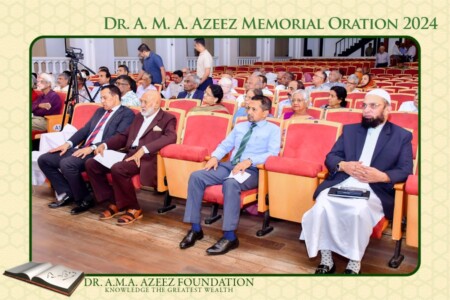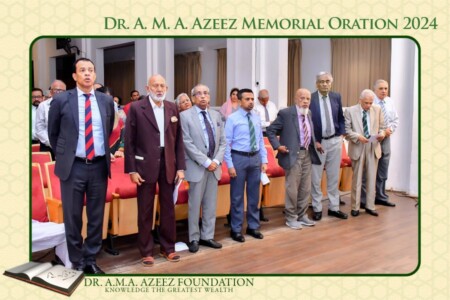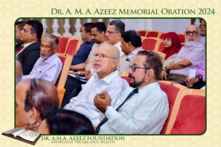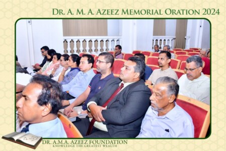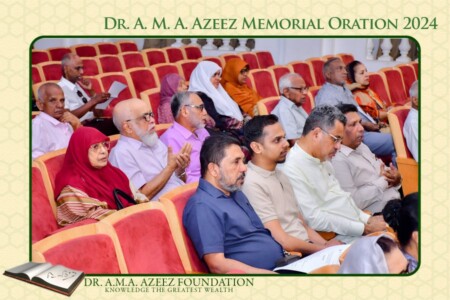 The Dr. A.M.A. Azeez Commemoration Meeting and the Memorial Oration were held on Saturday 17th February 2024 at 9.45 a.m. at the Ghaffoor Hall, Zahira College, Colombo 10. As usual it was a fairly well attended and a dignified function.